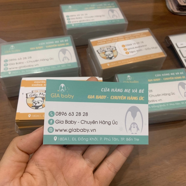 Danh thiếp thực thế của shop Gia Baby được in bởi Still Printing: